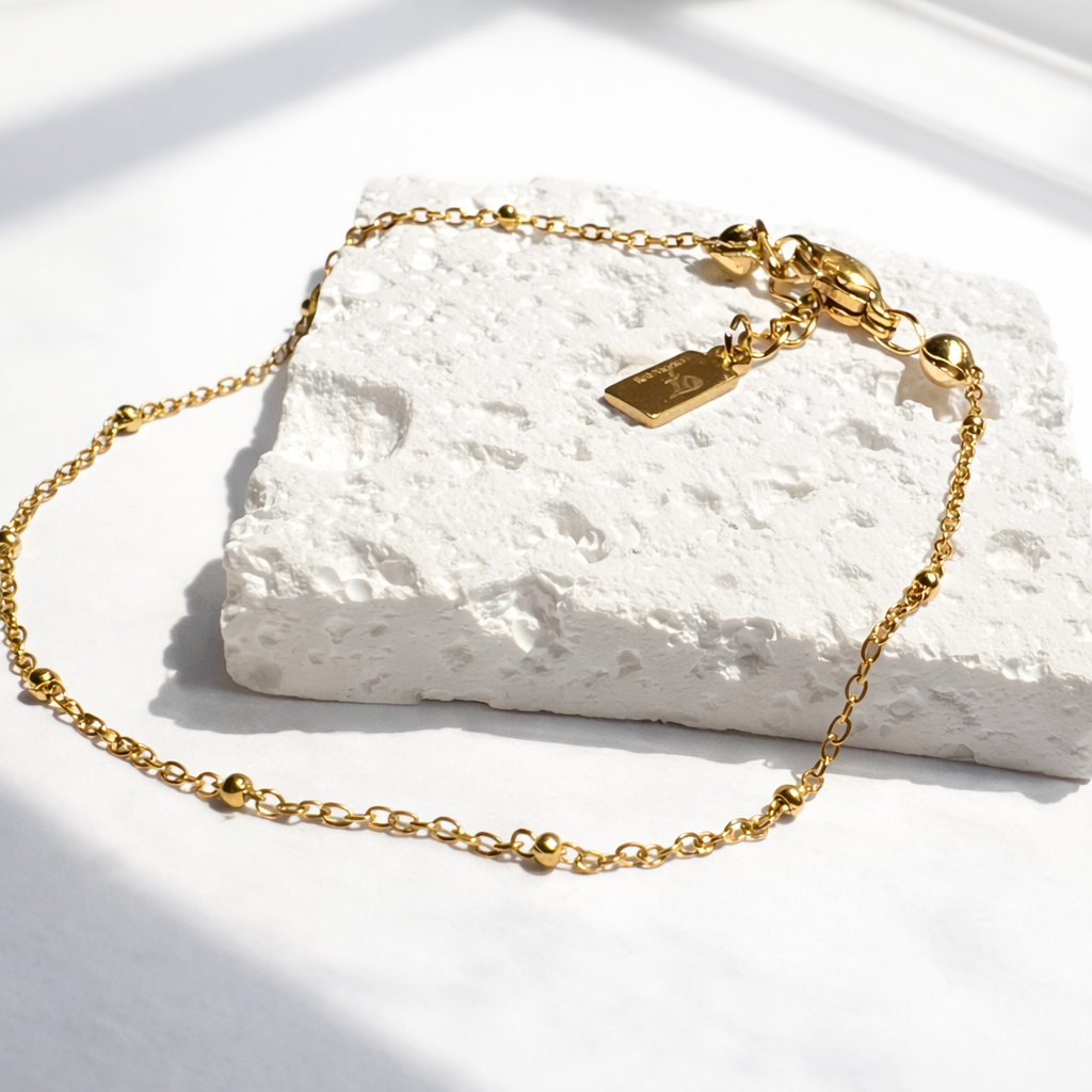 Smykket er fremstillet i 100% rustfrit stål og belagt med slidstærk PVD samt 18 karat guld. Denne eksklusive behandling giver en smuk og langtidsholdbar finish. Materialet er vandfast, allergivenligt og helt fri for nikkel, hvilket sikrer maksimal komfort og et smykke, du kan bære hver dag.
