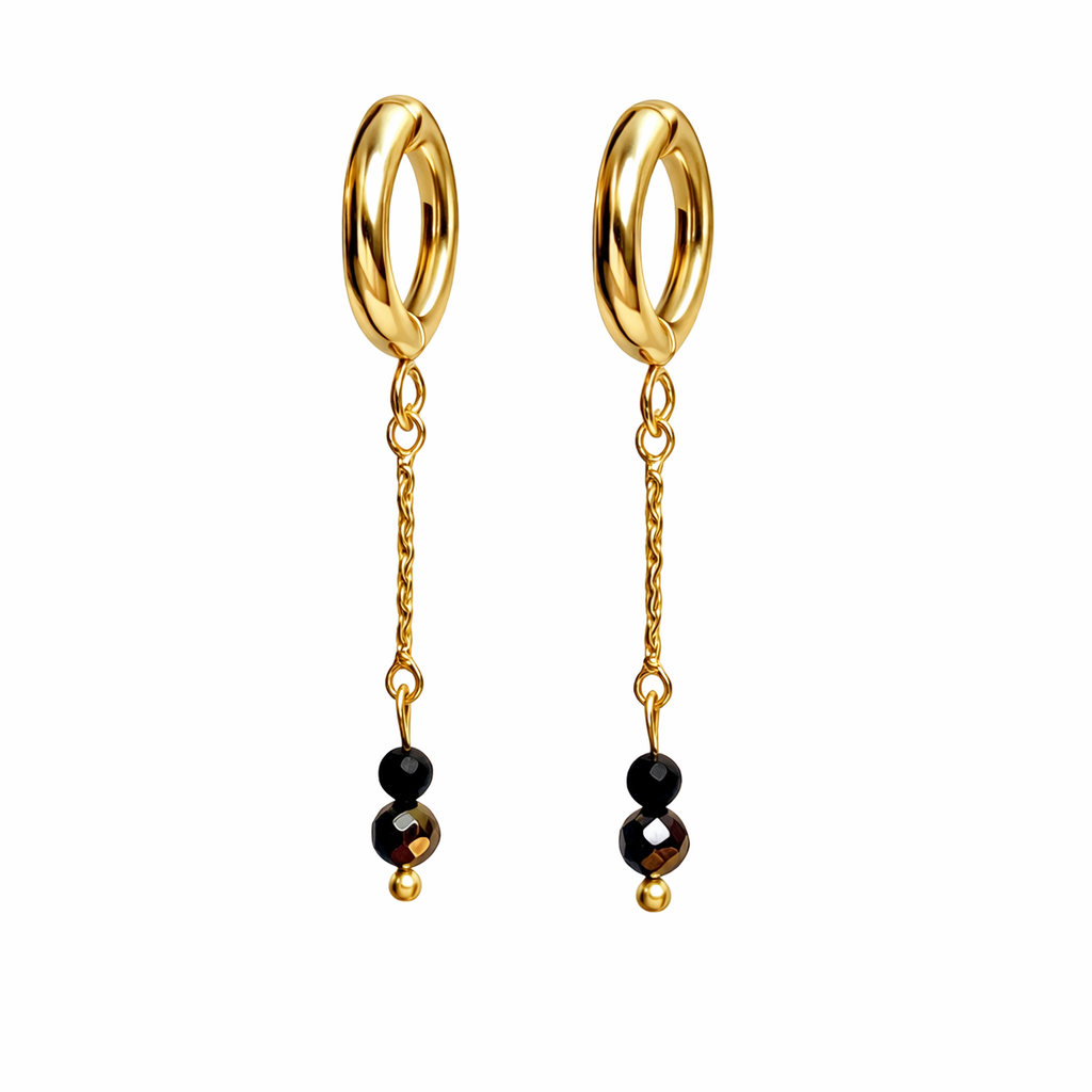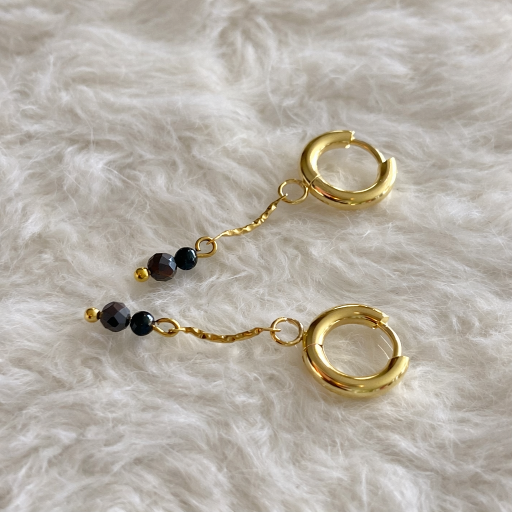 Disse hoops kombinerer klassisk guldlook med mørke, en facetsten og fin sortdetalje.